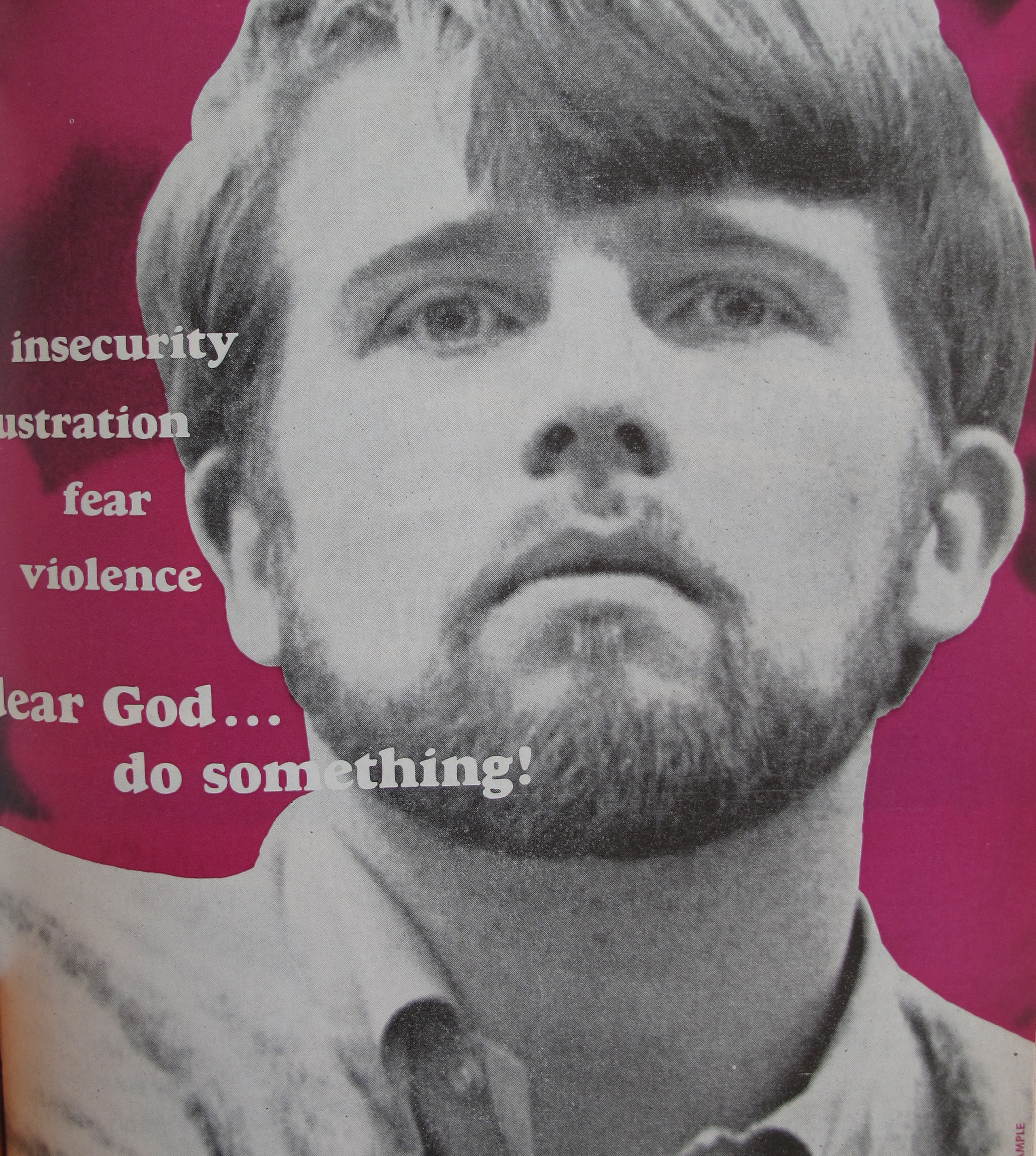 I don’t have much to say on the Conference’s domestic evangelistic efforts beyond noting that they were all-pervasive and clearly attempted to engage the larger picture of social unrest — albeit with limits. Using a tactic I’ve written about before, the Standard sought to make use of the national unrest for evangelistic purposes. The September 22, 1969 Standard contained an eighteen page clip-out evangelistic tract that made extensive use of social unrest to motivate a faith commitment. Titled “Insecurity, frustration, fear, violence — dear God… do something!,” the tract was liberally illustrated with images from Vietnam, protests, riots, and newspaper headlines trumpeting the various disasters of the age.  The opening statement (“I find my world/ is bits and pieces/ with no thread/ of meaning/ To tie it together./ What can I do?”) anticipates the answer: “you can be sure that you are a Christian!”