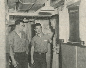 A chaplains talks with sailors aboard the USS Henry County, October 21, 1968 – Bethel University Digital Library