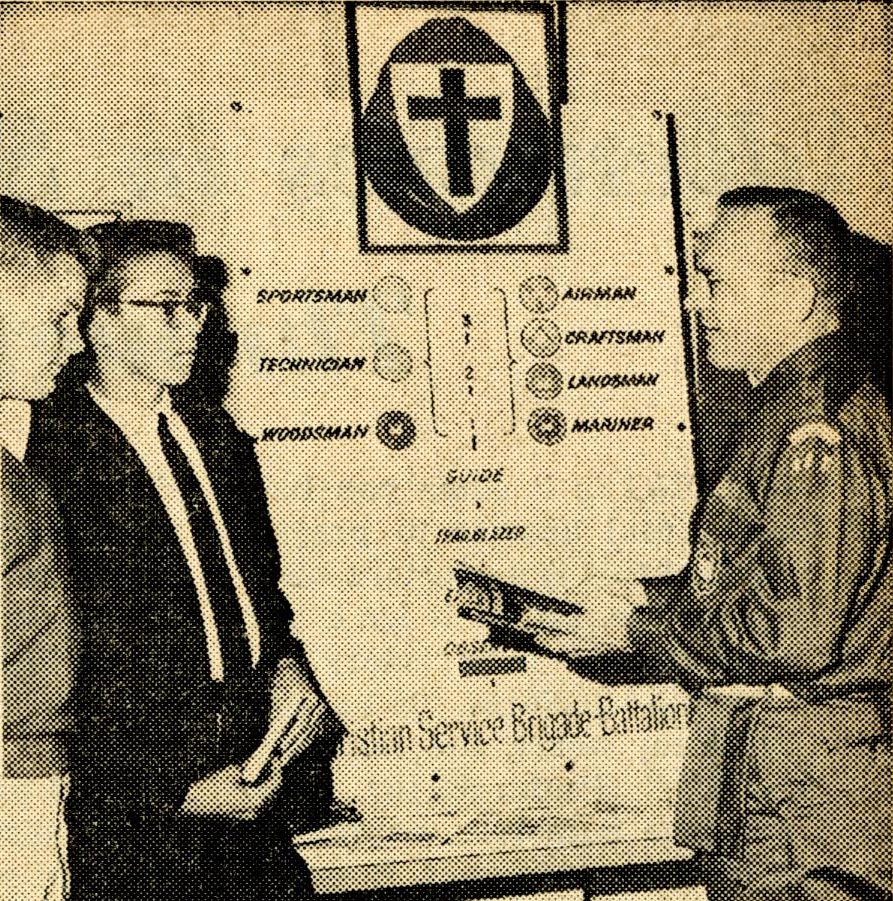 In 1962, before the Vietnam era, Brigade photos show largely civilian-clad leaders and members. Inculcating patriotism was a significant aspect of the program. A December 24, 1962 Standard advertisement read, “patriotism and love for country stand at the core of Christian Service Brigade training.”