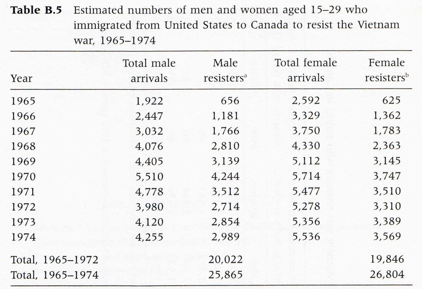 ²¹ John Hagan, Northern Passage: American Vietnam War Resisters in Canada (Cambridge, MA: Harvard University Press, 2001), 241.
